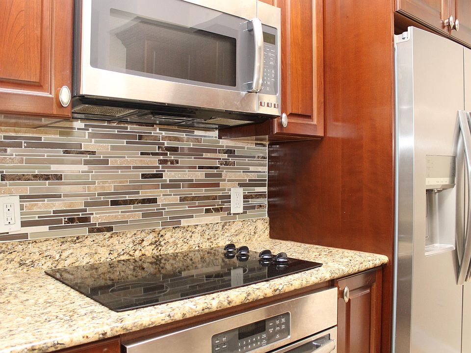 Granite countertopsAmple storageSoaring ceilingsModern kitchenRich wood floorsStainless steel appliances