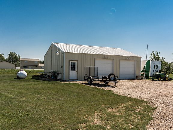 Great home with acreage and close to town! This home boasts a very open floor plan with a large MBR suite and nice finishes throughout. Beautifully landscaped around the home. Great patio and an awesome detached heated garage (mancave)w/1/2 BA. Electric floor heat throuhgout home and attached garage with GFA backup heat. Check out this great home today!