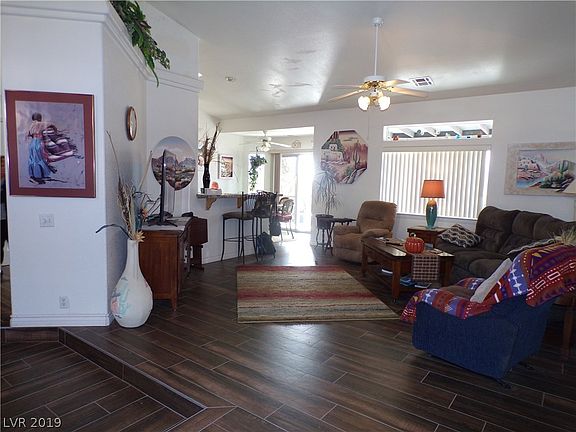 Come tour this great home in Winery area. Over $25k in upgrades over last 2 years including SS appliances, wood look tile flooring, amazing tile shower, granite counter tops, baseboard & more. All appliances included, fridge w/built in Keurig. Split floor plan. Tall ceilings make the house seem so much bigger. Sunk in formal dining room/den. Covered patio, fully landscaped & fenced. Views of valley from the back & Mt Charleston from front.
