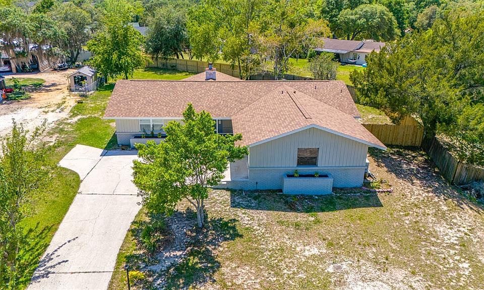 This Adorable 2 bedroom 2 bath 2 car garage home. The bedrooms are extremely large with their large counterpart the walk in closets...you'll love the space. Talk about space, enjoy yourself in front of your wood burning fireplace on your new LVP flooring in your spacious living room. The kitchen has all new Stainless Steel appliances with a circular dining room that adds to its architectural character. Then outside to your covered patio that invites you to your "almost" half acre fenced property. Propane gas for hot water. A Generator for those just in case moments. This home offer is available for the next three days "priority" to Active-Duty Military, Retired Veteran that was honorably discharged, Widow of a Veteran, an Educator in the State of Florida, First Responder, EMT, EMS or Law Enforcement SEE ATTACHMENT AND CALL FOR MORE INFORMATION.