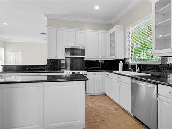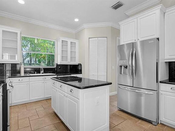 Courtesy of Keller Williams Realty Boca Raton. Located in a prestigious gated community, this exquisite 6-bedroom, 4.5-bath courtyard home is move-in ready! Featuring a private heated pool, spa, and a separate guest house, it's perfect for entertaining. The first-floor primary suite offers a spa-like retreat with a jacuzzi tub and separate shower, while the second floor boasts a cozy library. The chef's kitchen shines with brand-new appliances. Enjoy nearby Hillsboro El Rio Park North with pickleball, sports fields, and more. Just minutes from Mizner Park, top-rated schools, pristine beaches, and downtown Boca Raton luxury and convenience at its finest!