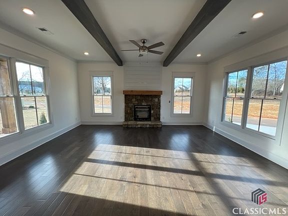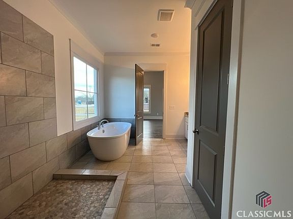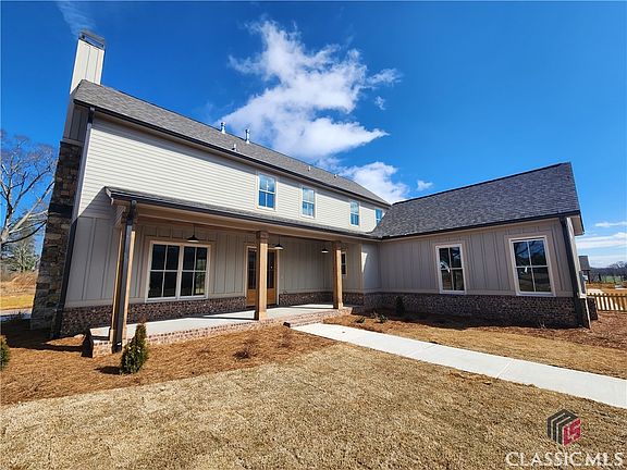Welcome to Luxury Cottages living in Watkinsville’s premiere community Trove. Cottage 3 features the primary bedroom on the main with 4 bedrooms, and 3.5 baths. On the main level is a foyer opening into the family room, gourmet kitchen, family room, office, and primary bedroom. The gourmet kitchen features granite countertops, tile backsplash, an island, a pantry, gourmet stainless steel appliances, and hardwood floors. The primary bedroom has a beautiful bathroom and walk-in closet. Stairs w/ oak handrails and wrought iron spindles lead upstairs. 2nd floor features and a flex room, 3 secondary bedrooms and 2 baths. The exterior features two covered porches on front and back of the house making it perfect for entertaining.