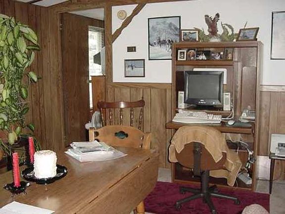 Secluded dwelling w/mature trees & lots of flowers. Over 2 acres, manufactured home, 2 bedrooms, 2 full baths, GFA/CA. Addition--10'X30' includes LP fireplace in living room. 8'X39'--addition is enclosed sun room. Additions make property over 1500 sq. ft. of living area. Refrigerator, dishwasher, range, water softner w/reverse osmosis water system. TWO double car garages. Woodburner in one garage. Serene setting w/lots of updates.