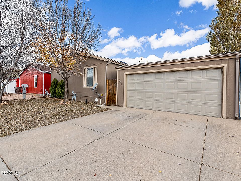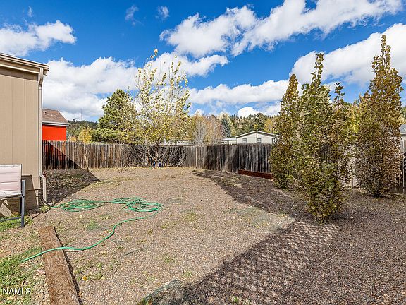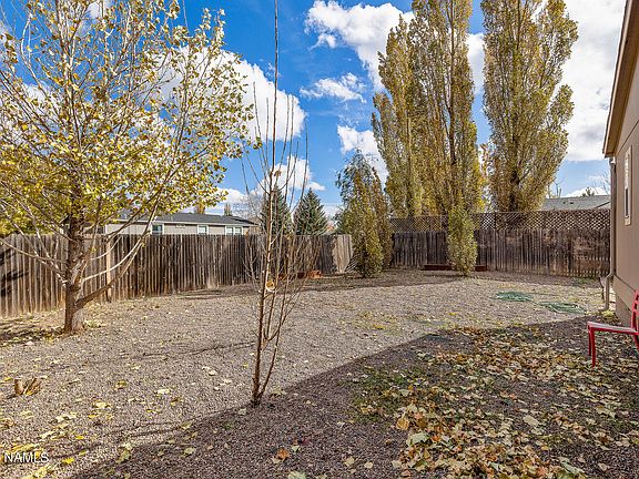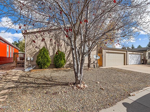 This 3/2 manufactured home is located in a quiet residential neighborhood on the West side of Flagstaff close to the community park, endless hiking trails and is minutes from town and NAU. There is a large, fenced yard for your dog (and a doggie door), a 2 car garage, wood flooring throughout, newly remodeled bathrooms, new paint inside and out, a wood burning fireplace and a gas range. This home is perfect for a family or for your NAU student!