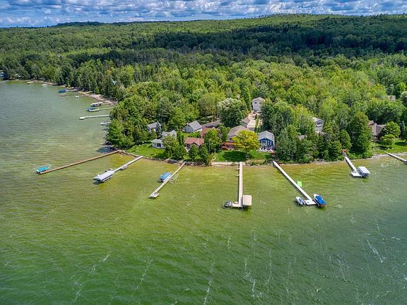 Enjoy spectacular sunsets from this ranch home on a small peninsula that juts out on Burt Lake's eastern shore. Many upgrades including the roof and kitchen. An added bonus is the guest quarters above the garage with a bedroom, bathroom, kitchen and living room. The property is close to Indian River, yet secluded at the end of a dead end road. Great year round fishing for the outdoor enthusiast and plenty of garage space for all your gear or a fabulous place to just relax and enjoy the lake.