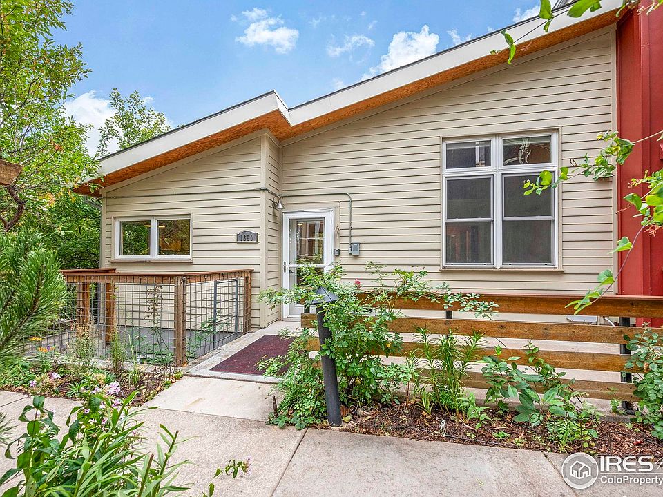 Welcome to Silver Sage Village - Boulder's best-kept secret! This well established and vibrant 50+ cohousing community embodies the spirit of "Aging in Community." Members enjoy the privacy of their own beautiful homes along with exceptionally cared for shared amenities - flourishing gardens, indoor and outdoor gathering spaces, a bike shed, wood shop, and a Common House equipped with a gourmet kitchen, library, craft room, exercise room, guest room and extra storage space. The HOA fee covers heat, water, sewer, trash, and snow removal. The home itself is a low-maintenance, rare 1/2 duplex, offering 1960 sf of light-filled living space, 2 spacious patios, a yard, and a detached garage. The main level features an open kitchen, dining and living area with vaulted ceilings, a skylight, and gleaming hardwood floors. The main level primary bedroom suite consists of a sleeping area and a separate office, linked by 2 ample closet spaces (one with laundry hookups), and a large full bathroom with dual sinks. The lower level offers two additional bright, generously sized rooms that allow options for a studio, office, or bedrooms, plus a second full bath, laundry room with sink, and a sizable storage and utility room. Enjoy year-round comfort with baseboard heat and passive solar warmth in winter, and a swamp cooler, mini-split and additional included window AC unit for summer. The lush yard invites gardening or space for pets, with the option for community maintenance. With just 16 owner-occupied homes, Silver Sage listings typically come along fewer than once per year! You'll be delighted to get to know your neighbors here through regular potlucks, community projects, and celebrations. To top it off, this home is ideally located in a quiet neighborhood near open space, parks, trails, and the vibrant NoBo Art District's restaurants and galleries, with easy access to public transportation.