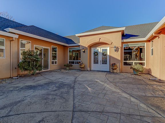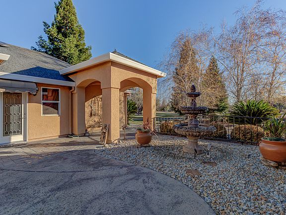 Beautiful custom home situated on 5 fully fenced acres with gated entry. Home features 2 master suites, plus 2 additional bedrooms, an office, beautiful upgraded kitchen with granite counters and stainless steel appliances, marble floors in kitchen and bamboo flooring throughout, whole house vac, and owned solar. Backyard is an entertainers dream featuring a large covered patio, pebble tech pool with waterfall and a built in bbq. Home also has an attached 2 car garage and a detached 3 car garage. This home is a Must See.