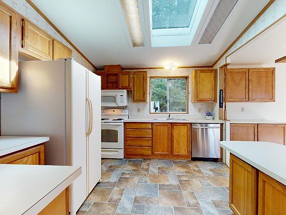 Amazing ocean views located on a private 4 plus acre parcel! Open concept manufactured home has 2 bedrooms, 3 bath, with a spacious den/office which can be used as a third bedroom. The basement below is the same size as the home, 1620 sq feet, it is heated with the third bathroom and laundry area. Rv garage, and 2 additional attached single car garages. There is another 2 story finished building with amazing ocean views, would make great guest quarters! Ask to see 3D tour inside!