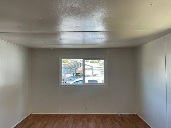 You will love this adorable home with many new upgrade's features! Floors, kitchen cupboards, appliances, countertops, sink, faucet, lighting. The home has been freshly painted and has new vinyl windows. Carport parking for two cars, nice small back deck and shed and side yard for planting a garden or flowers. Very reasonable space rent and offers water sewer trash! Close to bus lines and shopping and so much more! CASH ONLY SALE!