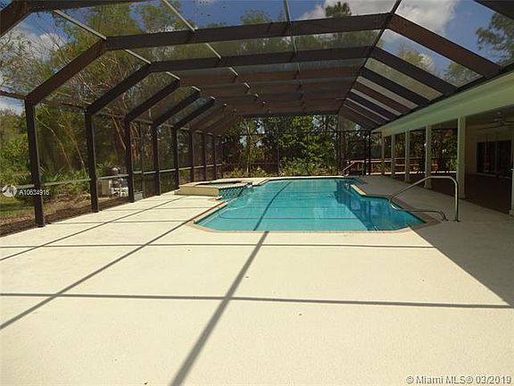 4 BR/3 BA home sits on 2.5 acres. 2 car attached garage and 2 car detached garage. Family room has recessed lighting and surround sound system. Formal living room has wood burning fireplace with natural coral. Solarium has tile floor, tongue and groove ceiling, bar w/sink; refrigerator, ice maker and shelves. White wash wood cabinets in the kitchen with a pass through. Ceiling fans throughout and 3 A/C units. Master bedroom has his/her walk-in closets. Florida room has 2 skylights, wood ceiling and sliding doors to patio. Huge covered patio with heated pool and spa. Detached garage has a Perkins diesel generator. Call listing agent today before it's gone.