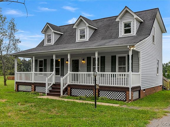 Welcome to Tranquility Drive where you have 3.4 acres of peace. This adorable 4-bedroom 2 bath cape cod has been completely remodeled with new lvp floors, carpet, new windows and HVAC! The baths have been renovated with upgraded showers, sinks and fixtures and the kitchen is a farmhouse style dream. Large granite island seats 4 comfortably and the built in stovetop and overhead vent are amazing. The large stainless-steel sink is by the window to overlook the backyard. Washer and dryer convey with home. This home has 2 bedrooms down and 2 up, great for company. Only 5 miles to Lake Chesdin so bring your boats, RVs and even horse friendly! Don't miss your chance to own your piece of paradise!