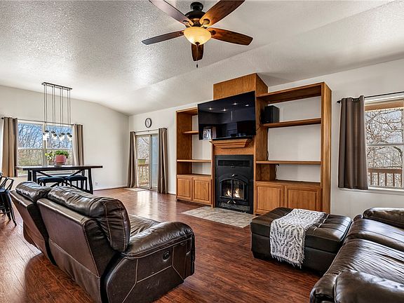 Your own pond, creek and waterfall with mini-farm country living and the convenience of everyday essentials. This spacious home sits on 16 beautiful acres and offers 5 bedrooms and 2 full baths on the main level, plus a bonus room and half bath downstairs, perfect for guests, hobbies, or extra living space. The open-concept main living area features a cozy fireplace, flowing seamlessly into the dining area and kitchen with a walk-in pantry. Step outside onto the full-length back deck, an ideal spot to relax and take in the peaceful surroundings. The property is well-equipped with an above-ground pool, a separate office or flex building, a large metal shop, and a barn, offering endless possibilities for work, storage, animals, or recreation. Explore the creek running through the property and the 40 foot staircase waterfall that is all enhanced during wet weather. Relax and fish in your own stocked pond. With room to roam and space to grow, this property delivers privacy, versatility, and comfort.