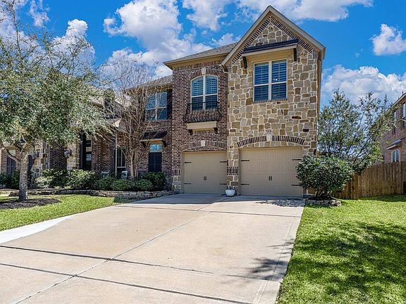 Traditional elegance meets modern functionality in this Trendmaker home! Located in the master planned community of Fairfield, this 2 story home boasts 5 spacious bedrooms, 2 downstairs, 4.5 baths, and 3 car attached garage! Stunning entry with gorgeous hand-scraped wood flooring that flows into the light and bright two story family room with corner fireplace and wall of windows! Huge island kitchen features wood stained cabinets, granite countertops, & stainless appliances including double ovens & gas cooktop! Relaxing owner's retreat with abundant light boasts a spacious bath and California closets! Elegant wrought iron staircase leads to second floor game room, 3 large bedrooms and 2 full baths! Amazing backyard oasis w/extended covered patio, sparkling pool, and tons of green space! Enjoy a short stroll to the lake, dog park and splash pad! Walking distance to Swenke Elementary! A must see....this home is nothing short of spectacular!