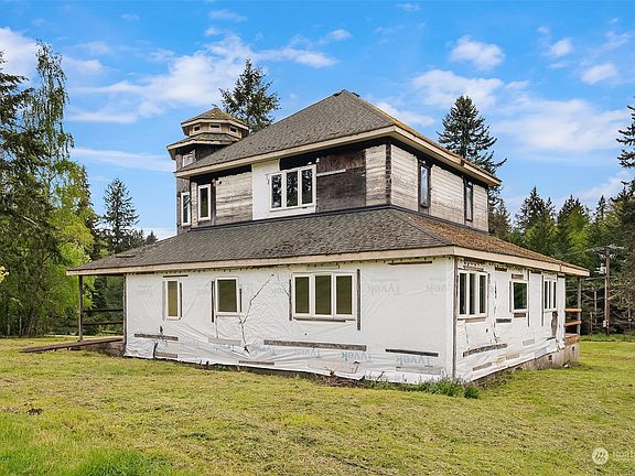 Vashon farm potential in an ideal location. Located on the coveted west side of Vashon Island, this 1908 farmhouse is wrapped by 6.37 acres of hard-to-find sunny, rolling equestrian land. In the early years, it was a working farm and a beacon of craftsmanship. Today, the 2-story home's dry interior has 3 bedrooms and 2 full baths, while in these rooms and most areas, ceilings and walls are open to the studs with no lighting or heat source. The home is absent of knob and tube wiring, has updated copper plumbing, areas with original fir flooring, 9' ceilings, a large, spacious attic, a covered wraparound deck, and a perimeter concrete foundation. An opportunity to revitalize this home, making it once again a beacon to revel in, awaits you.