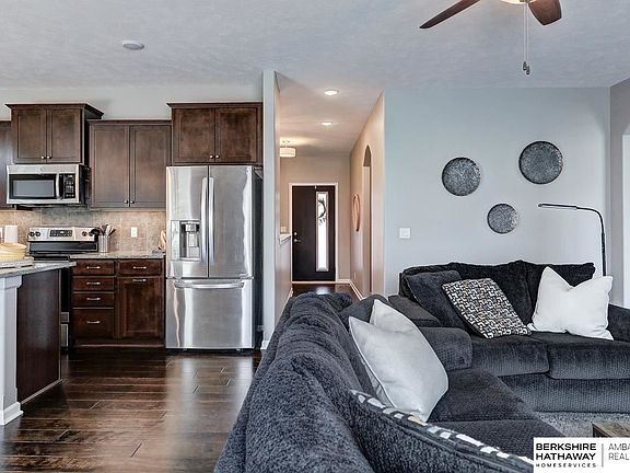 Welcome Home! Why wait to build when you can move right in to this beautiful ranch home with NEW FENCE and all interior paint. Wood flooring throughout the entry, living, kitchen, and dining areas. Kitchen with quartz counters, tile backsplash, SS appliances - all are included, with a large walk-in pantry. The main living area is open to the kitchen with a vaulted ceiling and fireplace. Primary bedroom has a nice sized walk-in closet attached to the convenient laundry room. The Primary bedroom also has 2 sinks and a beautiful tiled shower. All beds/or office space are on the main floor. There is a nice sized closet in bedroom 2. The clean open basement is ready for you to finish how you want with a bath rough in. Great location with easy access to I-80. All Gretna schools are close by. Home has been mitigated for radon. There is sump pump as well. The neighborhood playground is close by.
