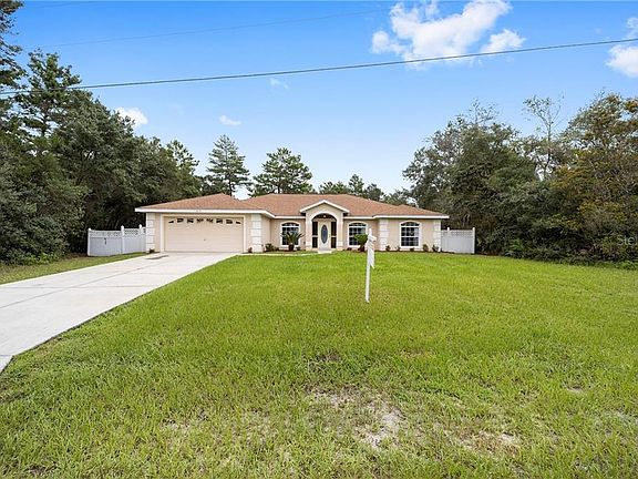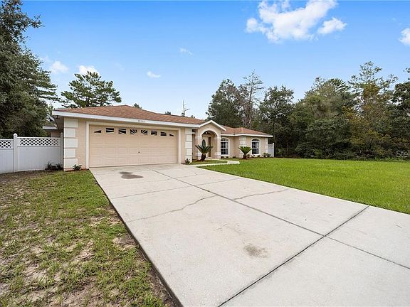 Private, Great location, with over 2000 sq ft of living space! These are just a few of the words that can describe this beautifully detailed home. Covered foyer entry and oversized garage. Formal dining room, large living/family room. Whether you are the everyday cook or the weekend chef, this eat in island kitchen is perfect with its rich wood cabinets, closet pantry, newer appliances. Oversized principal suite with walk in closets, tray ceiling, huge shower, garden tub and dual vanities. Large inside laundry with washtub. For year round entertaining, enjoy the enclosed screened in patio which overlooks the very private backyard which is surrounded by lush trees and landscaping. Close to shopping, Ocala's entertainment scene and major highways.