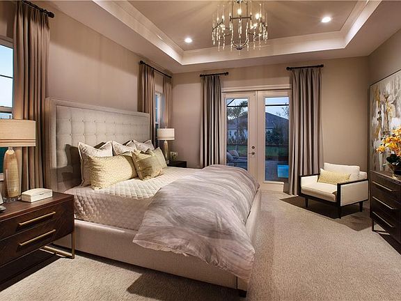 - Interior Features: High Ceiling(s), Master Bedroom Downstairs, Open Floorplan, Split Bedroom, Walk-In Closet(s), Crown Molding, Solid Wood Cabinets, Thermostat, Kitchen/Family Room Combo, Solid Surface Counters, Tray Ceiling(s)