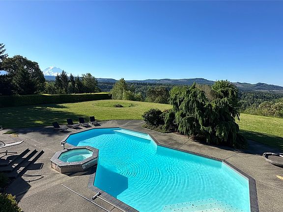 Paradise at the Top!Beautiful Estate Oasis on over 5 1/3 acres.Magnificent peaceful, panoramic views of Mt. Rainier, Cascades & foothills over extensive, mature landscaped grounds.5 Bedrooms including main level primary suite three additional bedrooms; 1 w/ensuite & 2 with attached baths one w/ roll in shower & wide doorways.Gourmet kitchen w/ eating nook & family room.Main level executive office overlooking entrance. Game room w/ wet bar, In-home theatre with sound proofing & black out shades, in-home gym with balcony & view.Three additional rooms for added easy access storage.Grounds include 40,000 gallon in-ground pool, hot-tub and pool house. Elegant Porte-cochere leads to attached 7+ car garage & extensive paving& wired 4 sport court!