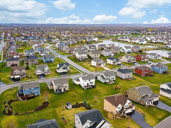 Spotless two story home in Tullamore! Hardwood Floors, tile flooring, SS appliances, open kitchen with center island, huge deck for outdoor events, #196 schools, main floor office, four bedrooms on one level, upper level laundry, spacious, owner's suite with vaulted ceilings and separate tub and walk in shower, and more. Bring your finishing touches for basement featuring room for a fifth bedroom, rough in bath, and huge family room. Must see!