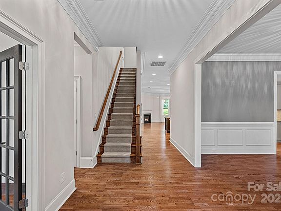 This Craftsman, Southern Living Home is located on a Private, Wooded Lot with lawn maintenance and water included. Primary on Main and Spa Bath with details like Wainscoting, spacious Walk-In Closet, Double Vanities, Garden Tub, and Separate Shower. Open floor plan, Sunroom, and Office with French Doors. Custom-Patio Paver terrace is perfect for Entertaining. Large Covered Front Porch. Foyer, Formal Dining Room, and Gourmet Chef's Kitchen-Granite Countertops, Island seating, and SS Appliances. Upper: Bedroom with Ensuite Bath, Two Bedrooms with Shared Bath, and Large Bonus Room or 5th Bedroom with Huge Storage Closet. Key features are NO carpet, laminate and prefinished wood flooring, Custom Lighting, and High Ceilings Throughout. Electric car charging port in Garage. Short Distance to top CMS Schools, Blakeney, Stonecrest, Waverly Shopping Centers. This home has it all and is a must see. Charlotte living at its finest on a tree lined street in Ardrey Commons.
