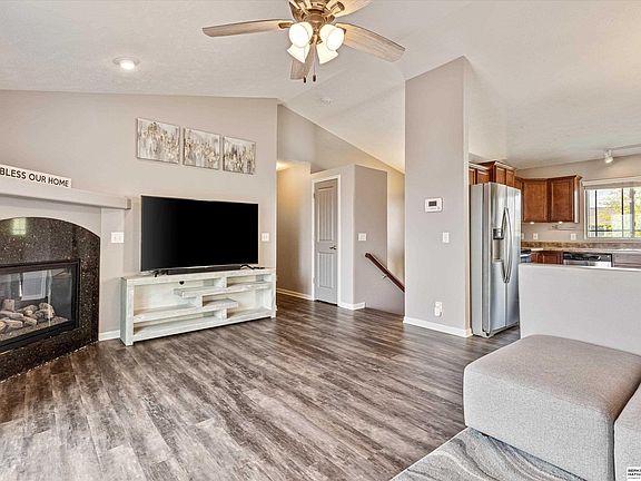 - Features: Fireplace, Cath./Vaulted Ceiling, Ceiling Fan(s), Sliding Glass Door