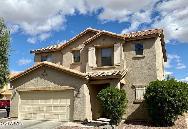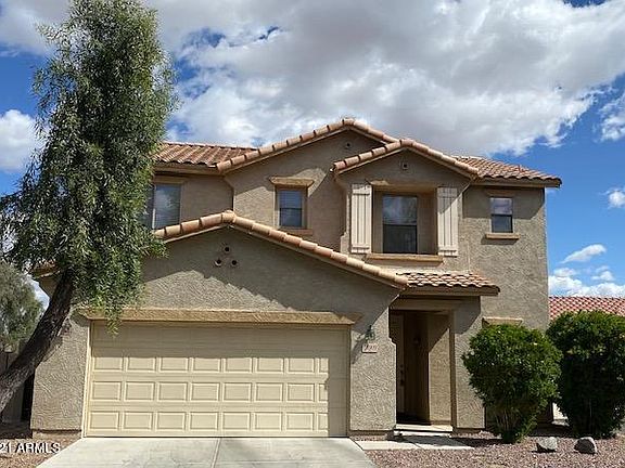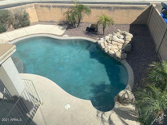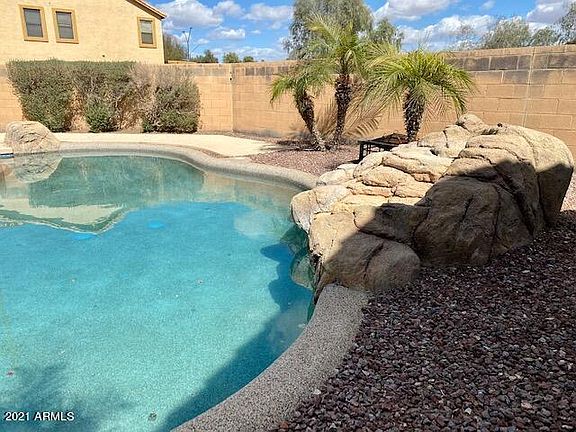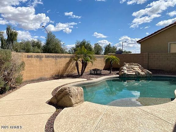 Beautiful 3 bedroom, 2 bath home is located on a corner lot in highly sought after Surprise Farms. The spacious kitchen has plenty of cabinet and loads of storage. Adjacent to the kitchen is a large family room with sliding glass doors and a covered patio leading out to the pool with a large water feature. Upstairs are three very nice sized bedrooms, 2 baths and a laundry room. Conveniently located just minutes to Surprise Marketplace, shopping, dining and entertainment. This low maintenance home is perfect for a lock and leave, an investment or a place to come home at the end of a long day and kick back and relax.