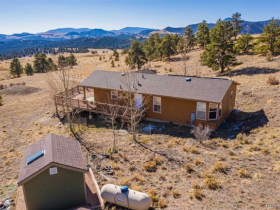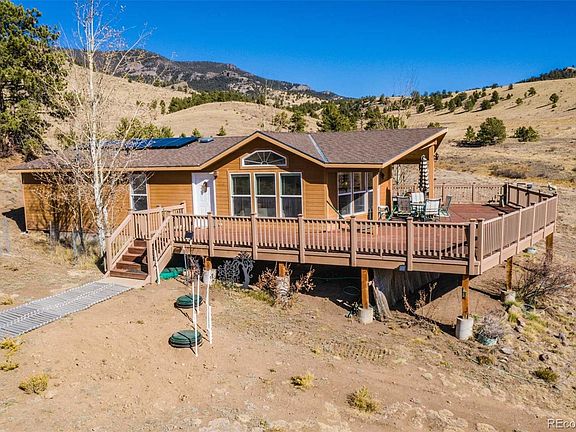 Exceptional mountain home in a gated community of large acreage parcels! Super easy access off Co Hwy 9! Tremendous views from all points on the property! Privacy & seclusion will be yours. Appx 80 acres fenced for your critters! Domestic well for the house & 2 livestock wells (that's right!) for filling the aerated & stocked spring-fed ponds on the property! Totally off-grid! Solar with back-up 11 kW propane generator. You'll be all set for relaxation and enjoyment of your mountain home & land - nothing to do here - just move in! Once inside, you'll find a very comfortable home ready for entertaining with a large kitchen/dining area that is open to the living room & walks out to the spacious decks that overlook your property. Three nice bedrooms & large laundry with storage! 2 storage bldgs - one for your toys & one for the generator! Property has a grazing lease with a local rancher to keep taxes lower! If you are looking for a mountain retreat that's close to hunting, fishing, skiing and a short distance to shopping & eateries (in Guffey), this is it!