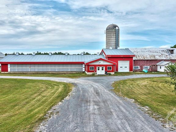 Productive farmland with barns and 100 acres of fertile sandy loam soils. This farm has approx 70 cultivated acres, 60 of the 70 acres are tile drained. Plus, 30 acres of bush. Newer barn includes milk house (plumbing in place for bulk milk tank), 400 amps, poured concrete footing, concrete floor, roof and wall ventilation. Older barn has open main floor, 100 amp sub panel plus hay loft for 4,000-5,000 square bales and conveyor hay belt. Hydro pole with switch to connect generator to barn if hydro goes out. Water to barn from two dug wells. Large 50x100 coverall with 20'x20' doors. Coverall has storage for approx 500 round bales or farm equipment. Hot water tank of 75 gallons. Convenient circular laneway around the barns. Bonus is revenue of approx $8,500 annually from lease with Bell - for their rental of approx 1/2 acre and access to their Mobility tower. Lot severance possible; severance of 4.5 acres with the barns from the farmland. Highspeed available. 45 mins to Ottawa