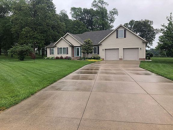 Ranch with a 30x 40 custom pole barn that blends with the house and you can put your camper and boat in. Built in 2020. Above the garage is a rec room with separate heat and air. Split rail fence. Lots of evergreens and trees. Well layed out home. Looks like a Ranch.