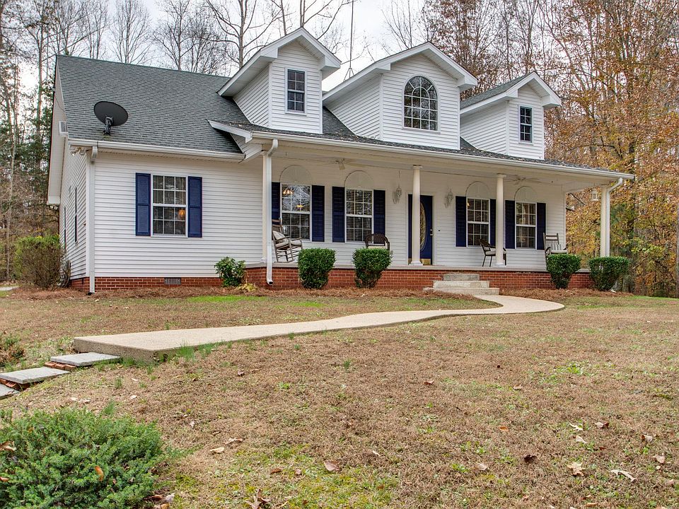 Private and wooded on a hilltop. Open floorplan with large kitchen overlooking the living room. Eat in kitchen with door to deck, large laundry room on main, gas FP , great custom features like crown molding and arched openings. 3 BR's on main level with huge bonus room up. Expansion area up could be 4th bedroom. So much room to roam and play on 7 acres. Hurry!!!