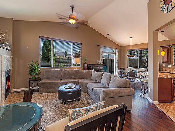 Newly remodeled, high ceilings and bright natural light welcomes you to easy living in this Wyngate Village home. The functional floor plan is inviting and includes two bedrooms, two baths, with 1272 square feet and a two car garage. Upgrades include laminate and tile flooring, new cabinets with granite counters and stainless steel appliances, fresh paint and new carpet. The back patio is private with concrete pavers and a beautiful gas firepit. Private and perfect for entertaining and gatherings. The landscape is low maintenance. Front landscape is maintained by common area and backyard is minimal. The Wyngate Development is gated and has a clubhouse and pool. This home is located in South Reno in the desirable Double Diamond area close to parks, walking trails, shopping, schools, skiing, restaurants and golf. No smoking or vaping. Small dog on approval Available August 1, 2022 Owner pays for HOA and sewer. Renter pays for water, garbage, electricity/gas, internet, cable. Cleaning deposit of $500 and security deposit of $2500 due upon signing of lease. no smoking or vaping. 1 small dog allowed upon approval.