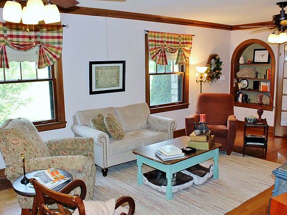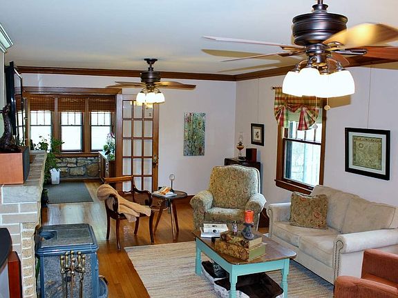 You won't find one like this. Restored 3 story stone house built in 1927. Your own private get away. The cabinets are custom made by Larry Bergen with granite and butcher block counters. The double ovens were new in 2013. The dream of many cooks, a Viking gas range top, the cupboards have pull out shelves and of course a wine cooler. The heat and air was new in 2012 with a whole house humidifier. There are new storm windows and much insulation for your comfort. Much of the home has the original wood floors, kitchen has hand planed wood flooring. This home has the charm it was built with, rounded doorways and even some windows are rounded. The baths have the original hexagon tile and porcelain fixtures and tile on the walls. You will love sitting in the office surrounded by stone and windows overlooking the inground pool. If you aren't working, you are sure to enjoy one of the 2 balconeys. All the second floor bedrooms walk out onto one of the decks. They each also have cedar closets. With the laundry on the second floor, there won't be so much running up and down hauling laundry. The master suite is on the 3rd floor. Large oasis with walk in closet and bath. The fixtures on this floor are not original but do fit the period of the home. The 3rd full bath is on the main floor and features a shower and large jet tub. Too many more features to mention, you just have to visit. The outside is just as amazing. Fruit trees, grape vine, pool, gazebo, garden area, pond and even an old smoke house/wine cellar. The pond presents a great location for family gatherings and picnics with the many trees and shade. The plumbing and electrical have also been updated. You won't find a house with more charm, privacy and space inside and out. The outbuildings are "as is". Call for your showing today.
