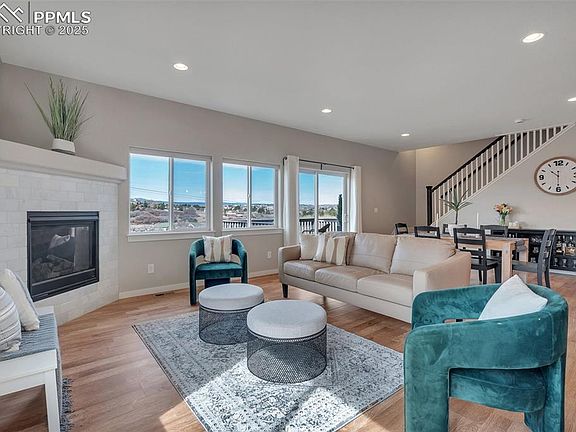 Welcome to this meticulously maintained 4-bedroom, 3-bath home in the highly sought-after community of The Oaks. The open-concept layout seamlessly connects the living room to the elegant dining area and modern kitchen, making it perfect for both entertaining and family gatherings or even a home office. This beautiful home features a tumbled marble gas fireplace, expansive windows that fill the space w/natural light and most impressively, offer stunning west & southwest mountain views. The kitchen is a culinary haven, equipped with 42” high wood cabinetry, ample countertops canned lighting and a spacious breakfast bar island w/modern pendants. From the dining room, step out onto the maintenance-free 13’x13’ Trex deck that is surrounded by incredible mountain views! The huge luxurious master suite includes a spacious walk-in closet, sitting area for reading and a spa-like ensuite bath with tile floor and beautiful tile accents in the shower. Three additional bedrooms provide ample space for family & guests or a home office. You’ll love the convenience of the upstairs laundry area. Need lots of space? Head down to the walkout basement with high ceilings and rough-in plumbing! Step outside to the beautiful backyard with completely enclosed 6' privacy fence. Sprinkler system in front/backyard! Park both of your cars in the oversized attached 2-car garage! This amazing home is in a cul-de-sac so your kids can play! Finish basement & make this a 6 bedroom home. Or easily rent it out! Or AirBnB / VRBO short-term rent the home! Bring your pets! Brand new carpet! Central A/C! Smoke-free! Low HOA! Beautiful sunsets! Friendly neighbors! Award-winning schools! Less than 2 miles from I-25, Downtown Castle Rock, Douglas County Fairgrounds, Philip S. Miller Park, restaurants, shopping and hiking trails! With its exceptional location, stunning views, and thoughtful design, this home is truly a rare find! Come take a look!!