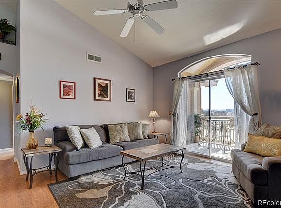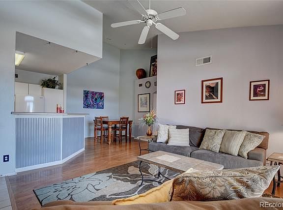 Immediately upon entering your eyes will be drawn to the soaring vaulted ceiling. Spacious and bright mountain views off the covered patio highlight the living area. Sophisticated upgrades such as laminate wood flooring and neutral paint tones are eye catching. Open floor plan allows for the dining area right off the immaculate kitchen offering plenty of storage. The quiet master suite features private master bath with herringbone patterned tile and a large walk in closet. Savor Colorado at nightfall on your covered patio. Optimum location just steps from the Highline Canal walking and bike trail. Only minutes from the Mineral Light Rail station. Amenities galore! Relax year-round in the hot tub, swimming pool in the summer, and dog-friendly community. Clubhouse also offers fitness center. Showings start Sat 23rd. Open house Sat 23rd 10-1pm.