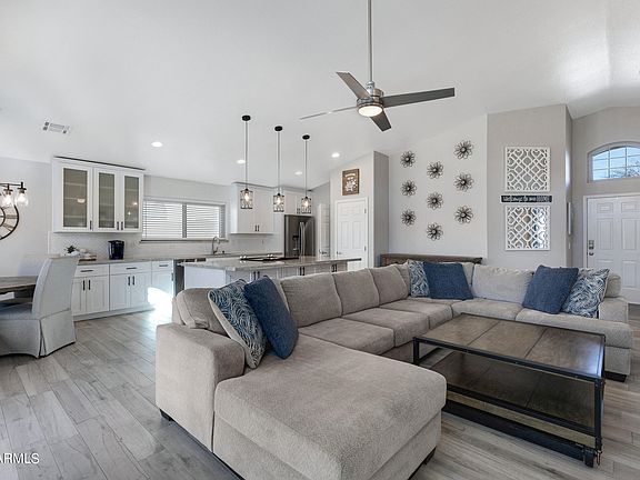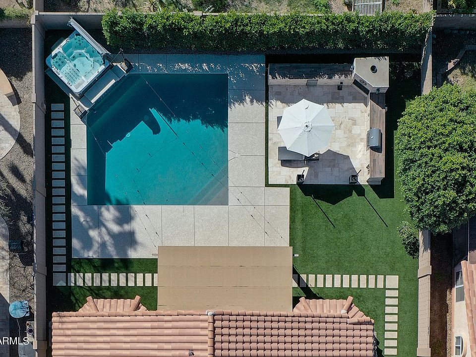 Imagine relaxing or entertaining in this completely remodeled and updated home with a resort back yard. Open floorplan is spacious with vaulted ceilings, modern fixtures and wood-look tile flooring. Prepare meals in the island kitchen that boasts shaker cabinets, granite countertops, tile backsplash, stainless appliance package, pantry and pendant lighting. Over $120k in recent remodeling, not including the kitchen. Includes HVAC, Pool, back yard & more. The Owner's Suite is a retreat with bay window, custom bath including a custom shower, enclosure, and walk-in closet. The backyard oasis includes a heated pool with waterfall and LED lighting, hot tub, outdoor kitchen with gas BBQ, refrigerator, firepit, fireplace, travertine and turf landscape, Ficus hedge for privacy, lighting, and more