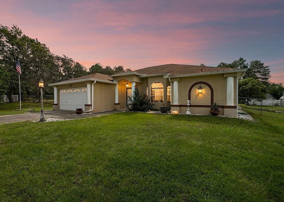 Welcome to this 3-bedroom, 2-bath home in the heart of Spring Hill, Florida, where rural charm meets everyday convenience! Nestled on just over an acre, pie shaped lot, the property offers a heated pool and spa for year-round relaxation with screen enclosure, and a fully fenced backyard that’s both private and functional. For hobbyists, car enthusiasts, or those in need of extra storage, the property includes a storage shed plus a 6x6 block-and-concrete pump house with a shingle roof. PIGEON FLYERS will love the two dedicated pigeon runs with an adjoining deck, making this a rare find for the right buyer! Inside, the open concept floor plan with fresh interior paint makes the home move-in ready! With no HOA or CDD, you can bring your toys, trailers, or RV without restrictions! Enjoy a low flood risk setting while being close to everything Spring Hill is known for—beautiful nature preserves, Weeki Wachee Springs, Gulf Coast beaches, and plenty of shopping and dining. Just a short drive to Tampa Bay, the area offers small-town comfort with big-city convenience nearby. This property is a rare find for those who want space to live, work, and play—Don't miss the opportunity to make this property yours!
