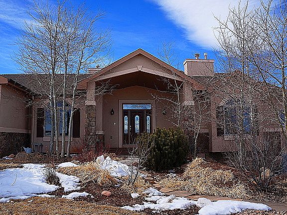 Beautiful Custom Home On 5 Acres. Large Gourmet Kitchen With Granite Counters, Stainless Steel Appliances, Large Island & Pantry. Open Floor Plan With Two Sided Fireplace Between Kitchen & Living Room With Expansive Windows For Spectacular Views Of Pikes Peak & Mtns. Main Level Master Has Fireplace & 5 Piece Bath. Walkout Finished Basement Has Wetbar, Family Room And Two More Bedrooms. This Is A Great Value!
