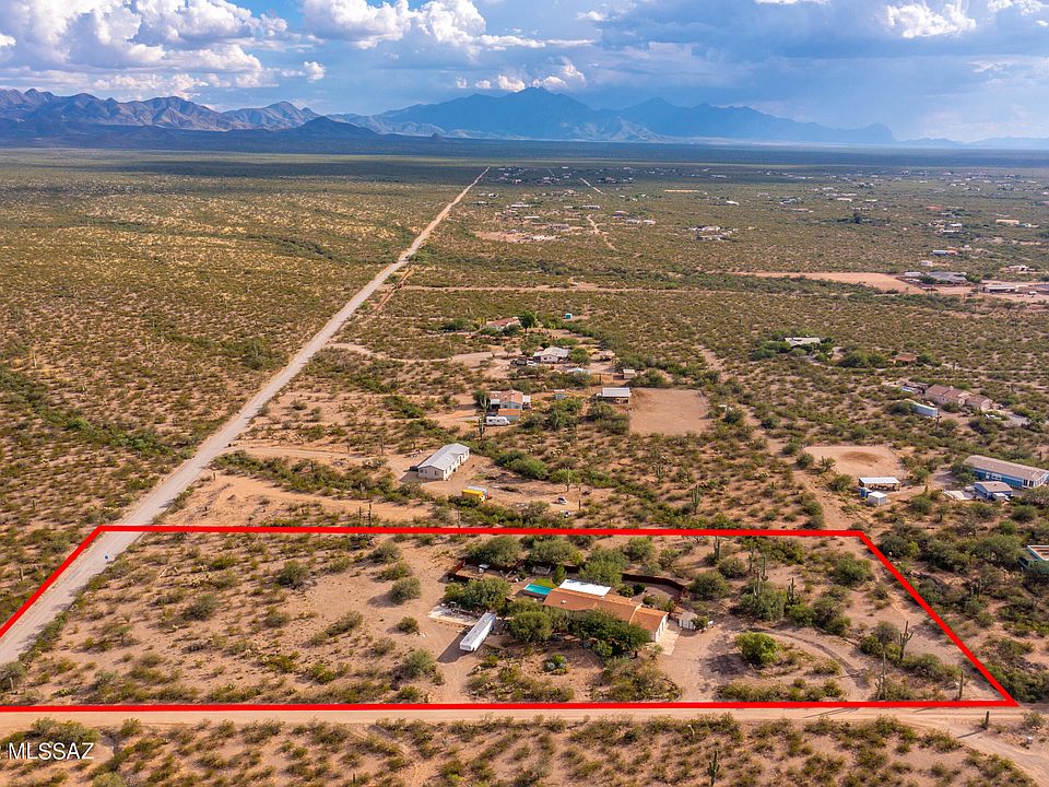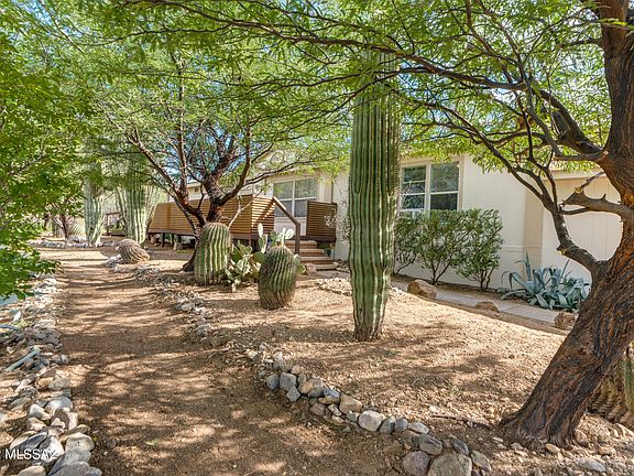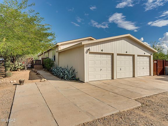 Looking for a desert getaway? This lush 4.13 acre lot in Southeast Tucson is the place to be! Natural desert in the front and beautiful landscaping with grass, decorative gravel, trees and more in the backyard! Large covered patio and fully fenced backyard with corrugated metal! Manufactured home offers 3 Bedrooms, 2 Baths, Living Room, Dining Area and Family Room! Open Kitchen with electric oven/stove, dishwasher, microwave and refrigerator! Owned propane tank with propane for the furnace and water heater! HVAC new in 2022! Spacious 3 Car Garage with built-in work bench and shelves! Cement pad and hookups for RV! Make this your new home today! Call for your private showing!