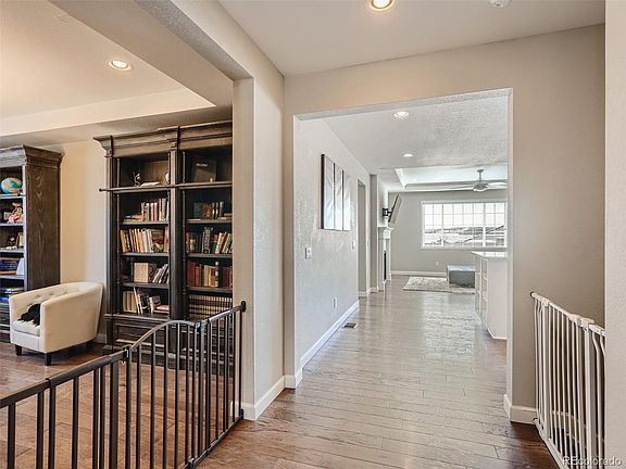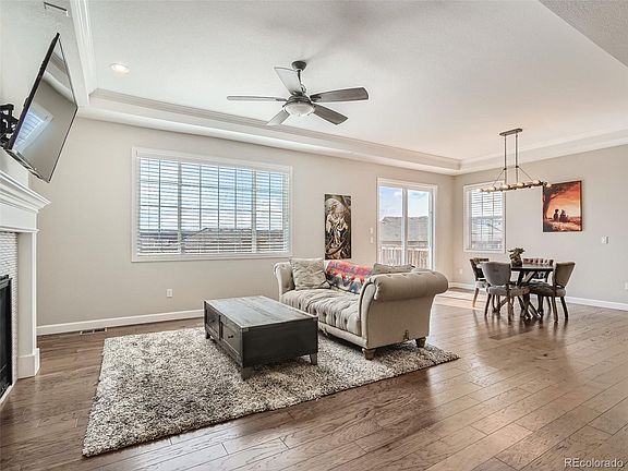 Stunning, ranch style home in the highly desirable Candelas neighborhood in Arvada. Distinctive, modern finishes will catch your eye throughout this amazing property. Your clients will absolutely fall in love with the spectacular views of the mountains & Downtown Denver from nearly every room. Home fronts to open space on a nice private lot situated on a quiet cul-de-sac street. The main floor features 9’ ceilings, beautiful hardwood floors, open floor plan & an abundance of natural light. Large formal dining rm with trayed ceilings, spacious bright & light kitchen w/oversized island, slab granite countertops, high end stainless steel appliances, walk-in pantry and tiled backsplash & much more. The adjacent eating space has slider that opens to a large deck with exceptional views! Great rm features a well appointed fireplace, ceiling fan, ample space for entertaining family & friends. Main floor primary bedroom features bay windows, beautiful 5-piece ensuite, walk-in closet, trayed ceiling and ceiling fan. The additional bedrooms, share a full hall bath, including main flr laundry. Recently installed solar panels to help save money on utility bills while enjoying a more environmentally friendly lifestyle. Need more room, look no further, an additional 1300 square feet finished in this exceptional walk-out basement, adding a 4th bedroom, 3/4 bath and recreation room with surround sound. Enjoy Candelas’ 2 gyms, 2 pools, tennis court and close to parks and trails! Don’t miss this great opportunity!