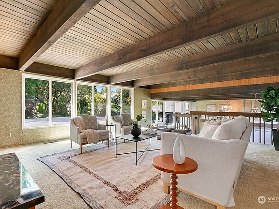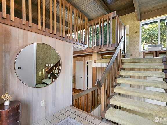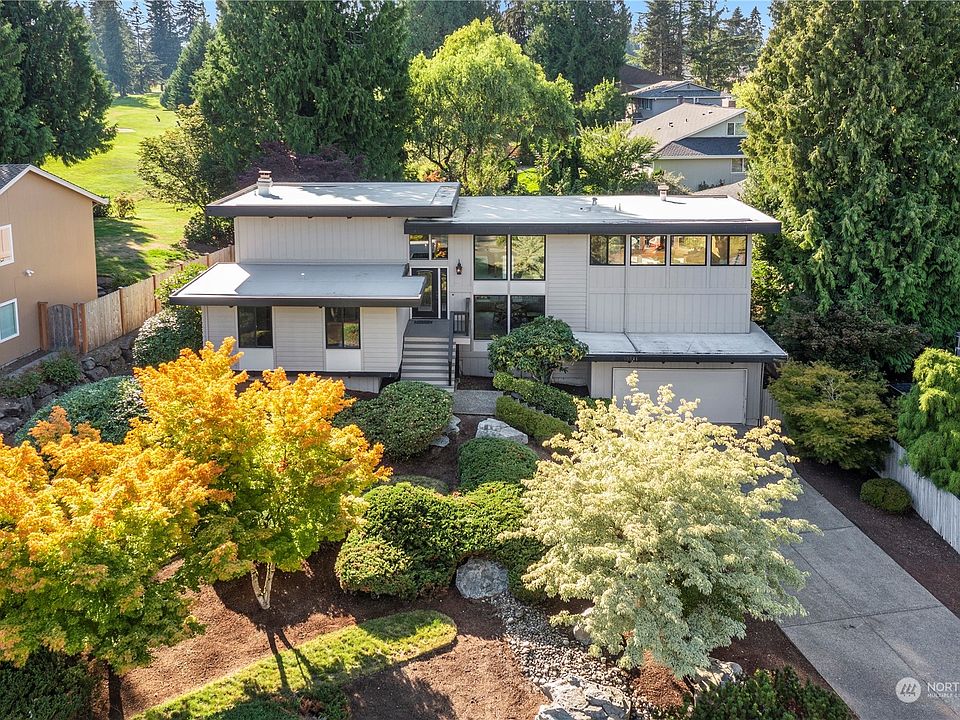 Calling all Mid-Century Mod Enthusiasts: exuding retro vibes from a bygone era, this 4 bed 3 bath home located on the Fairwood Golf Course sits back eagerly awaiting entry into its next chapter. Floor to ceiling windows send sunlight dancing across both levels, illuminating the wood paneled ceilings stretching throughout. Boasting original built-in’s, MCM fixtures & fireplaces, formal living & dining room + several add’l spaces for entertaining (den off kitchen + rec room). Primary w/ en-suite bath + ample closet space. Newly remodeled decks overlook expansive backyard w/native landscaping, ensuring privacy whenever you step outdoors. Newer systems (windows, roof, decks, furnace, plumbing). 2 car garage + abundance of storage! Welcome Home!