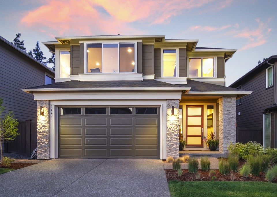 Welcome to the Parkhaven community. This luxurious 4 bedroom and 2.5 Bathroom MainVue home has many upgrades - including AC! Custom wood shutters, designer fixtures, grand kitchen island with quartz counters, stylish lighting, large dining room, two walk-in closets in master, dual vanities, bonus room and over-sized garage. Extra large sliding glass doors open up to the covered deck where the outdoor fireplace makes for a cozy evening spot. Near Mill Creek town center and Tambark Park.