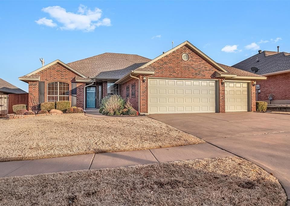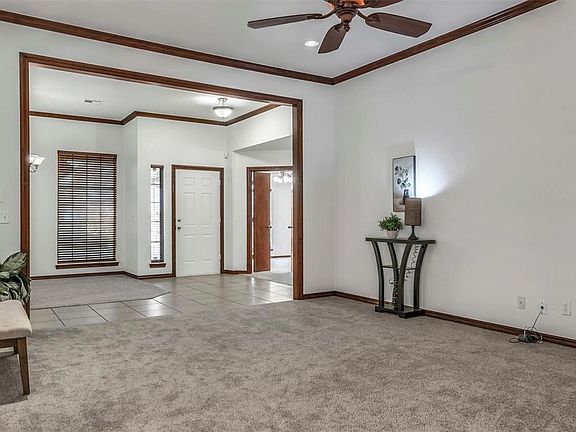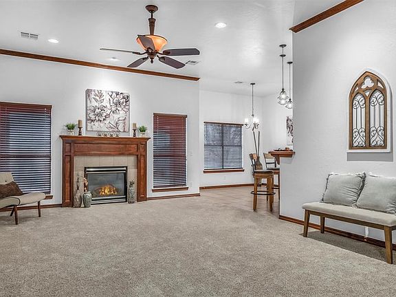 Gorgeous like-new, lovingly cared-for 3-bed, 2-bath home with two dining areas. Beautiful landscaping in both front and back yards. Freshly painted with brand-new carpeting. Inviting, light-filled open concept with tall ceilings. Kitchen has plenty of storage with a nice pantry and breakfast bar. Master spa has Australian closet and jetted tub, shower, double sinks and separate toilet room. Garage has in-floor storm shelter and brand-new water heater. Very nice neighborhood with community pool and conveniently located to shopping, recreational and medical facilities. Washer, dryer and refrigerator stay with home with an acceptable offer. Edmond schools. Come see this gem soon!
