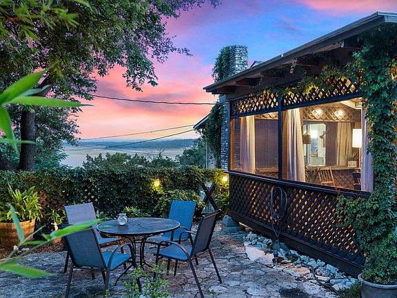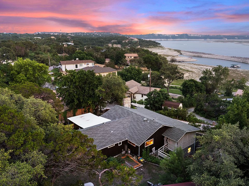 The Perfect Lake home Nestled above Lake Travis waters. A private retreat offering awe-inspiring views. Relax on the covered front patio and watch sailboats glide across the water. This picturesque half-acre property is large enough to build a second home with bigger lake views. Inside, a perfect blend of modern materials and old-world charm welcomes you. A cozy wood-burning stone fireplace sets the tone, while large windows fill the open floor plan with natural light. Renovations have transformed this 1965 home, including a new roof, updated bathrooms, tile flooring, and new lighting. Imagine cooking in the European chef's kitchen while admiring the sunset over the lake. Dine indoors by the fireplace or on the front covered patio or enjoy the romantic screened-in patio. Retreat to the open living area with views of the private garden patio or cool off under the outdoor shower. The oversized master suite features an ensuite bath with double sinks and a walk-in shower, along with ample natural light. Enjoy the half-acre property with organic native landscapes and gardens. An attached studio space with a half bath serves as a personal studio or office. This peaceful haven offers solitude and creativity. Conveniently located near Lake Travis marinas, shopping, dining, and downtown Austin. Highly acclaimed Lake Travis ISD and The International School of Texas complete this exceptional package.