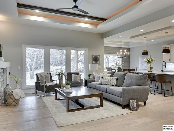 - Features: Wood Floor, Fireplace, Cath./Vaulted Ceiling, 9'+ Ceiling, Ceiling Fan(s)