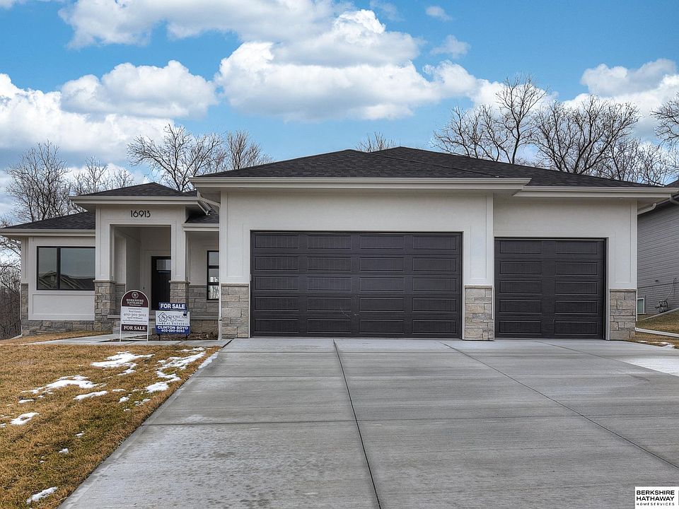 Just Completed and Open Sunday 1-3pm! This is SHOWCASE HOMES popular split bedroom ranch plan on flat lot backing to an acreage lot so no direct back neighbors and a nice tree line! The house is designed w/ a modern farmhouse feel featuring shiplap walls, shaker cabinets, farmhouse sink, & black light fixtures. The fireplace wall in the great room makes a big statement w/ a linear fireplace, shiplap, & built-in cabinets. The kitchen flows nicely & features a huge walk-in pantry w/ coffee bar, quartz countertops, custom cabinets w/ wood hood & birch shelving, & hardwood floors. The primary suite is nicely tucked away & connects to the laundry room. Great finished basement space w/ large rec room w/ corner fireplace, wet bar w/ tabletop island, 2 bedrooms w/ walk-in closets, 3/4 bathroom, & a large storage room. There is also a covered patio to enjoy your peaceful backyard!