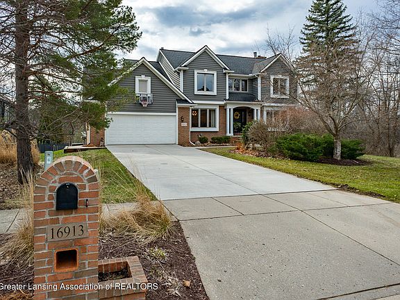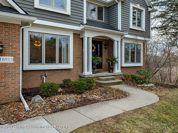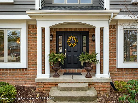 White Hills North newest offering in this 5-6 bedroom, 4 full bath, walkout, two story home nestled on a beautiful private parcel. Updated in the nicest way with charm and character galore. Enjoy the two-story entry foyer and almost 4000 square feet of living space! Fabulous hardwood flooring and a beautiful newer kitchen with stainless steel appliances including a 5-burner gas stove, granite counter tops, walk-in pantry large center Island with extended eating space, planning center that opens to the great room with a large bay window and full brick gas fueled fireplace. The 3 or 4 season sunroom adds extra living area with cathedral ceilings, floor to ceiling windows, deck access with a retractable awning overlooking the large private back yard. Music room, main floor study or extra living space with a boxed-out window opens to the great room with a set of French doors. Lovely large dining area with tray ceilings and crown molding plus a large bank of window and serving area from the kitchen. 5th bedroom or study on the main floor with full bath. The washer and dryer has its own room off the back hall and a nice two car garage. The beautiful primary suite on the second floor has cathedral ceilings and private bath including double sinks, whirlpool tub, ceramic shower, skylight and two walk-in closets. Three additional nice sized bedrooms and a wide upstairs hallway. Enjoy the fabulous walk out lower level with possible 6th bedroom, study or hobby room with a barn door and plenty of media and game space. Newer gutters and painted exterior. Enjoy the neighborhood park and lake. Low Bath Township taxes and Haslett schools!
