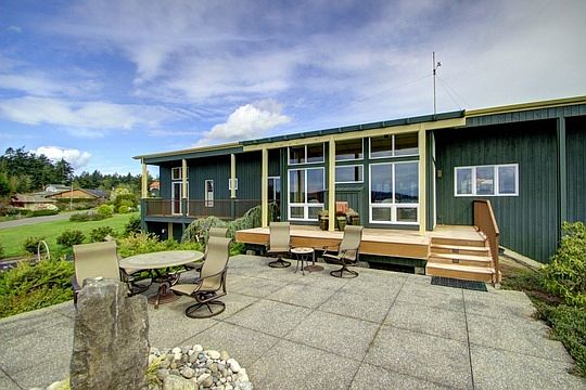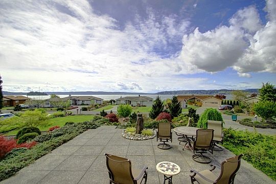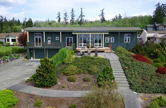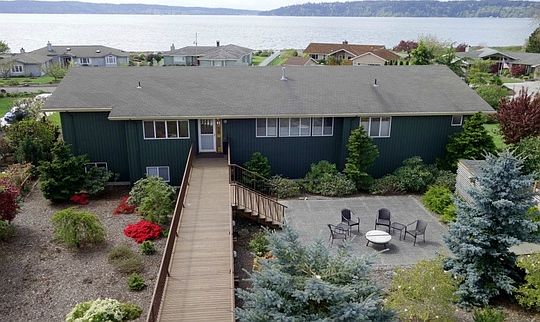 Beautiful views of the bay, islands & Olympic Mtns from the main floor...Living room, kitchen, dining room, home office & master bdrm w/vaulted ceilings. Sliders & main living room windows are low-E. Master w/jetted tub & guest bdrm have sliding doors to a balcony. kitchen has Oak cabinets, gas cooktop and tile floors. Downstairs is a MIL unit w/one bdrm, bath & kitchen w/granite tops, sink, micro. Beautifully landscaped with Community Beach access across street for beach combing, kayaking/fun!!