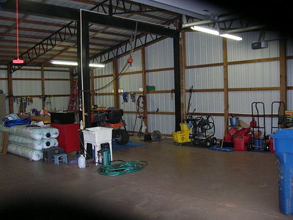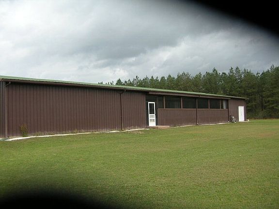 Over 6000 sq ft under roof in this metal bldg. which covers the 16 X 80 1996 mobile home. 16 ft wide front and back porch with a 50 ft garage/shop. Most of this 10-acre parcel is a hay field. Located outside city limits of Andalusia. LIve here and work here!