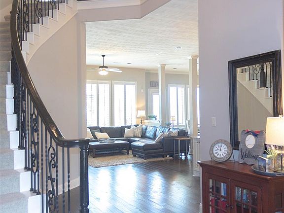 Beautiful Trendmaker built home in the master planned subdivision of Fairfield. Stone and Brick accent the outside with covered front porch to sit and swing.Warm hardwood flooring welcomes you home with private office to the left. Plenty of space for virtual learning and working from home.Curved staircase with wrought iron spindles accents your entry.2nd bedroom down with en-suite bath is great for guest, MIL suite or downstairs nursery. Wide open floorplan gives you a large great room. Hardwood flooring throughout. Large island for entertaining. Granite counters, stainless steel appliances and double ovens. walk in pantry and good sized laundry room.Stone Fireplace is at the heart of this room. Large casual dining space fits your farmhouse table. Master retreat with rainhead shower and huge walk in closet. Upstairs is 3 good size BR, 2 full baths, game room and media room.Outdoor oasis with covered patio, pool and spa. Enjoy evenings by the fire pit. PLENTY of space for dogs or kids.