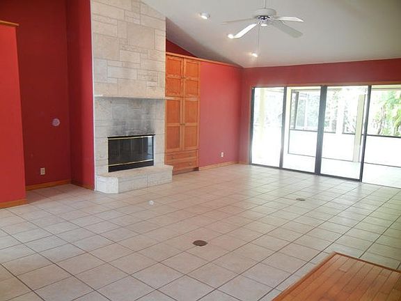 Don't miss this wonderful Jim Monde pool home on a corner lot and a paved street. This open floor plan was made for entertaining and the relaxed Florida life style. There are vaulted ceilings and a fireplace in the great room. Slider doors from the great room open to a large screened porch, pool and spa area with plants and gardens for privacy. Both bathrooms have new modern shower and floor tile and the master vanity has also been updated. The front door is also new. The seller has had everything checked and cleaned and it is move-in ready! The 0.57 acre lot allows you to have plenty of time for more relaxing activities after your lawn and landscaping obligations! The double wide concrete driveway has a turn out, a gate and a concrete culvert as well. Nature abounds in the area with